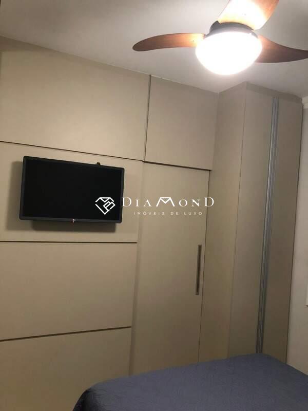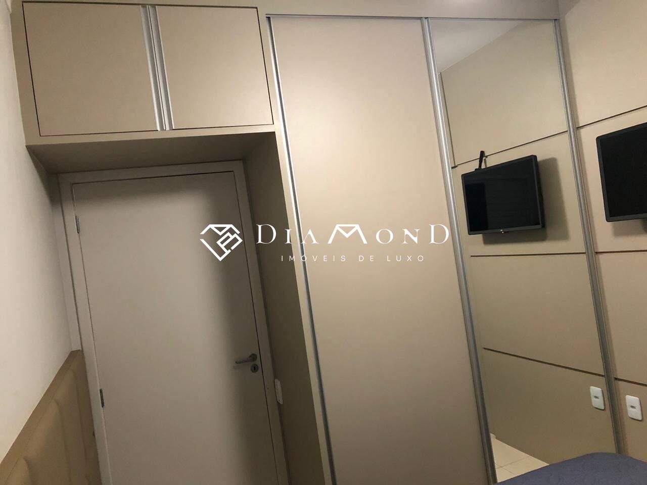 Com 2 quartos planejados (suíte com cabeceira estofada, ventilador de teto e mesas de cabeceira), sala dois ambientes com painel de TV estofado, rack e sanca de gesso, além de cozinha e lavanderia com armários, cooktop e depurador.