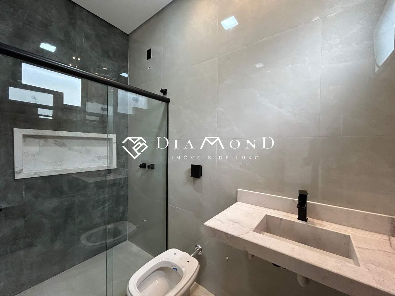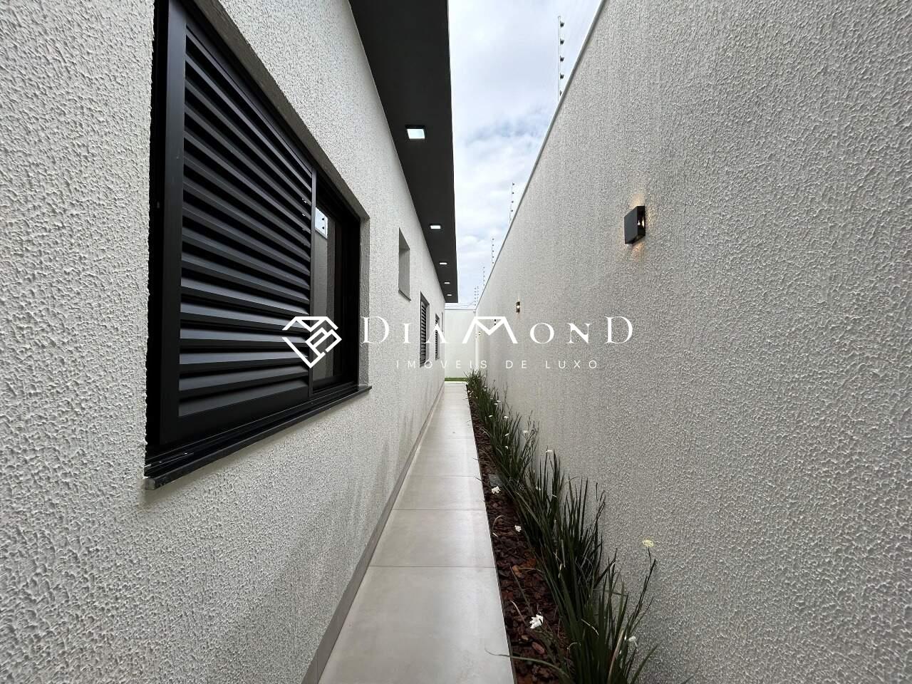 Área construída de 150 m² e área do terreno de 250 m². O imóvel possui fachada com revestimento em pedra natural e calçada em pedra portuguesa. Conta com vagas de garagem cobertas para dois carros, sala em dois ambientes com pé direito duplo, cozinha americana integrada equipada com cooktop, pia e bancada em granito. Área gourmet completa com churrasqueira e pia em granito. Dispõe de três quartos, sendo uma suíte do casal com box, além de banheiro social com box e um banheiro na área gourmet. A área de serviço é funcional e prática. O imóvel apresenta acabamentos modernos com iluminação em LED em todos os cômodos, arandelas na área externa, gesso rebaixado em todos os ambientes, piso em porcelanato grande com rodapé embutido, esquadrias em alumínio preto e porta de entrada de 3 metros de altura também em alumínio preto. Está preparado para água quente e conta com pontos para instalação de ar condicionado. O paisagismo inclui jardim e grama, enquanto o sistema de segurança possui câmeras, cerca elétrica, interfone e portão eletrônico, garantindo conforto, modernidade e segurança.