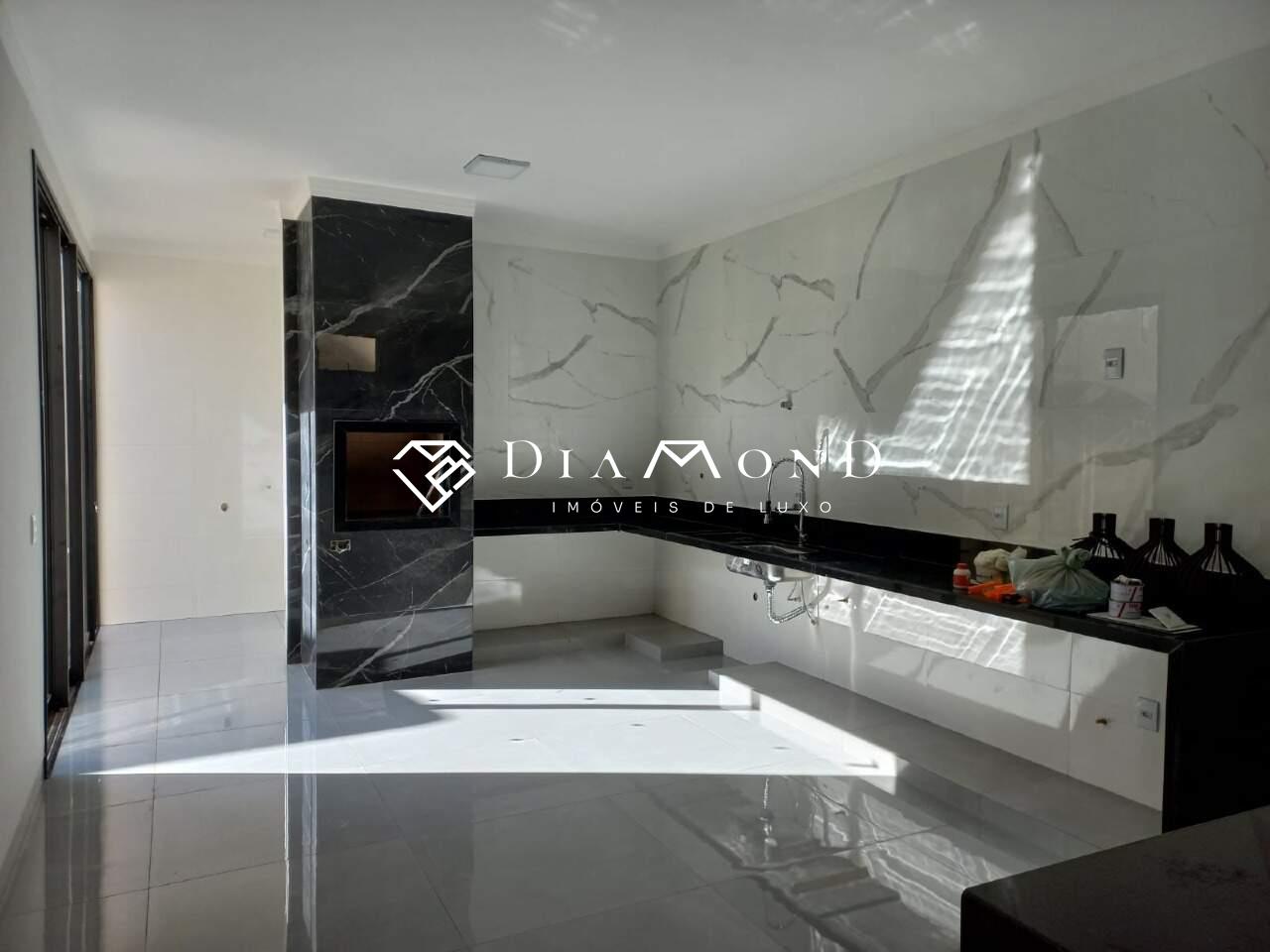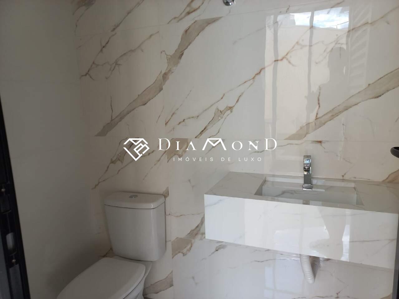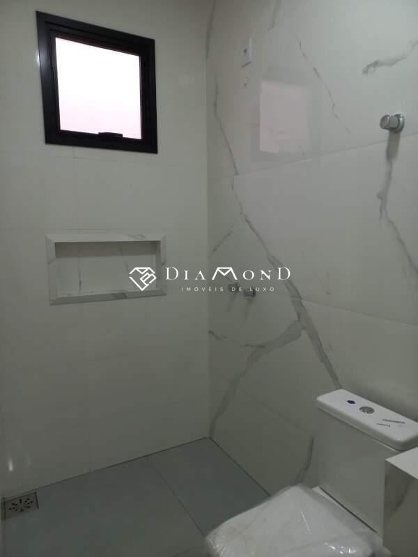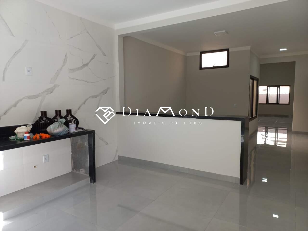 Casa nova com garagem para dois carros e espaço adicional para motos, sala com pé direito de 4 metros e sanca de gesso, jardim de inverno integrado, copa e cozinha conjugadas com espaço gourmet e churrasqueira, bancadas em granito preto São Gabriel, revestimento da cozinha em placas de 60x120 cm, lavabo, área de serviço funcional, três quartos, todos suítes com banheiros equipados com pias esculpidas e pontos para água quente. O acabamento é de alto padrão, incluindo porcelanato polido 84x84 cm, rodapés embutidos e esquadrias de alumínio. A casa também possui pontos para instalação de ar condicionado nos quartos, vídeo porteiro, muro com concertina para segurança, e portão basculante de 5 metros com motor. A área construída é de 186 m² em um terreno de 250 m².