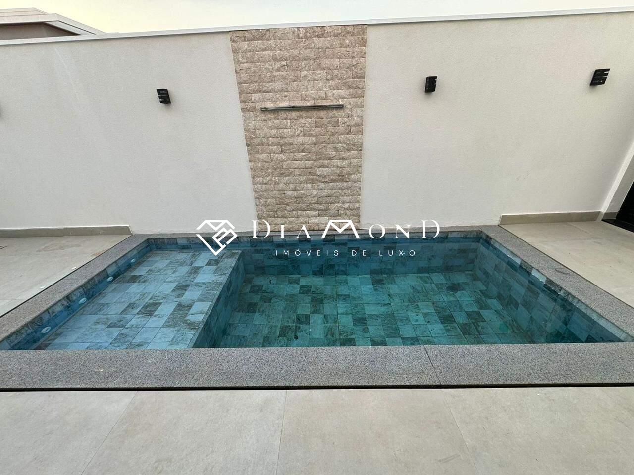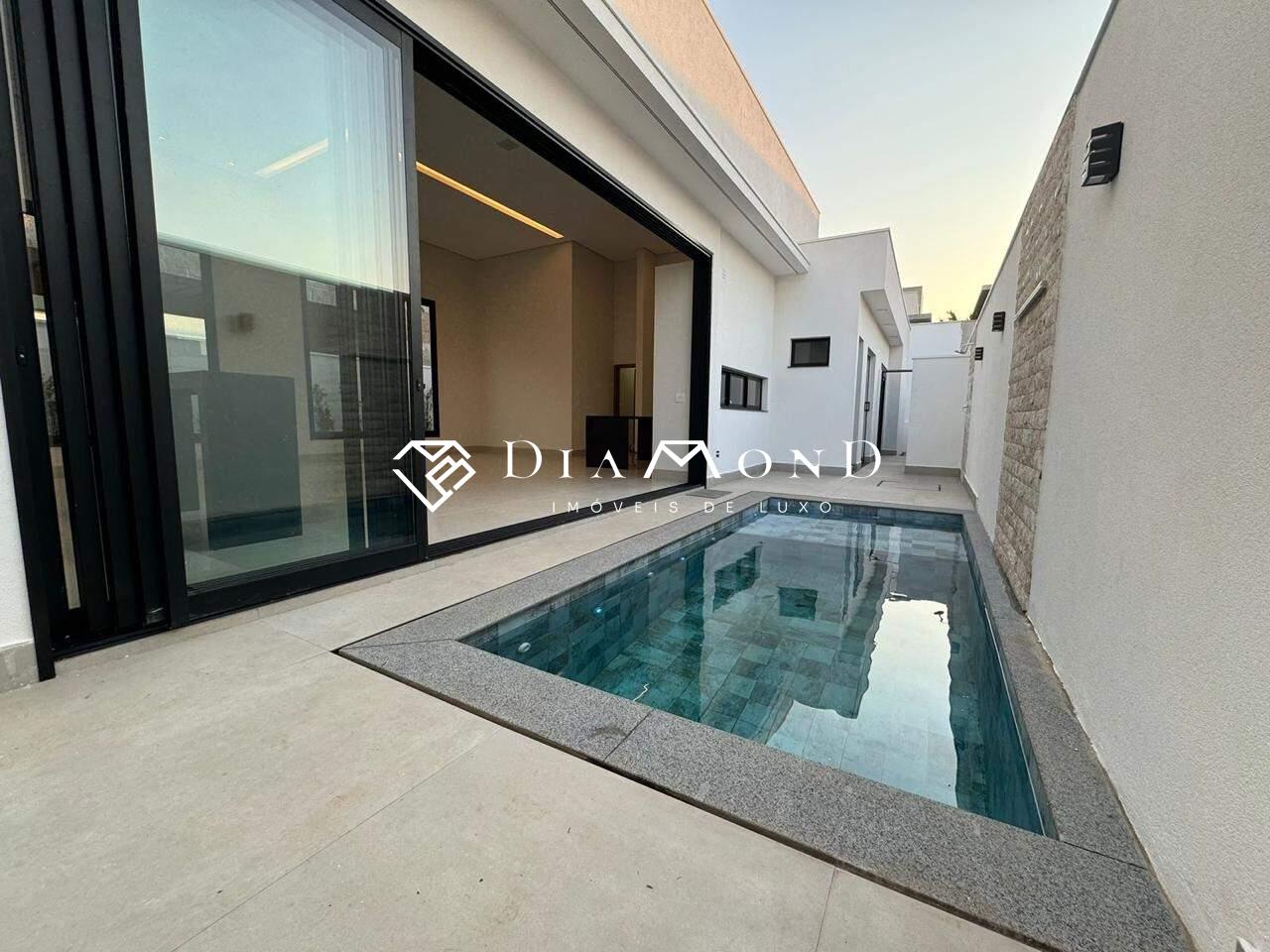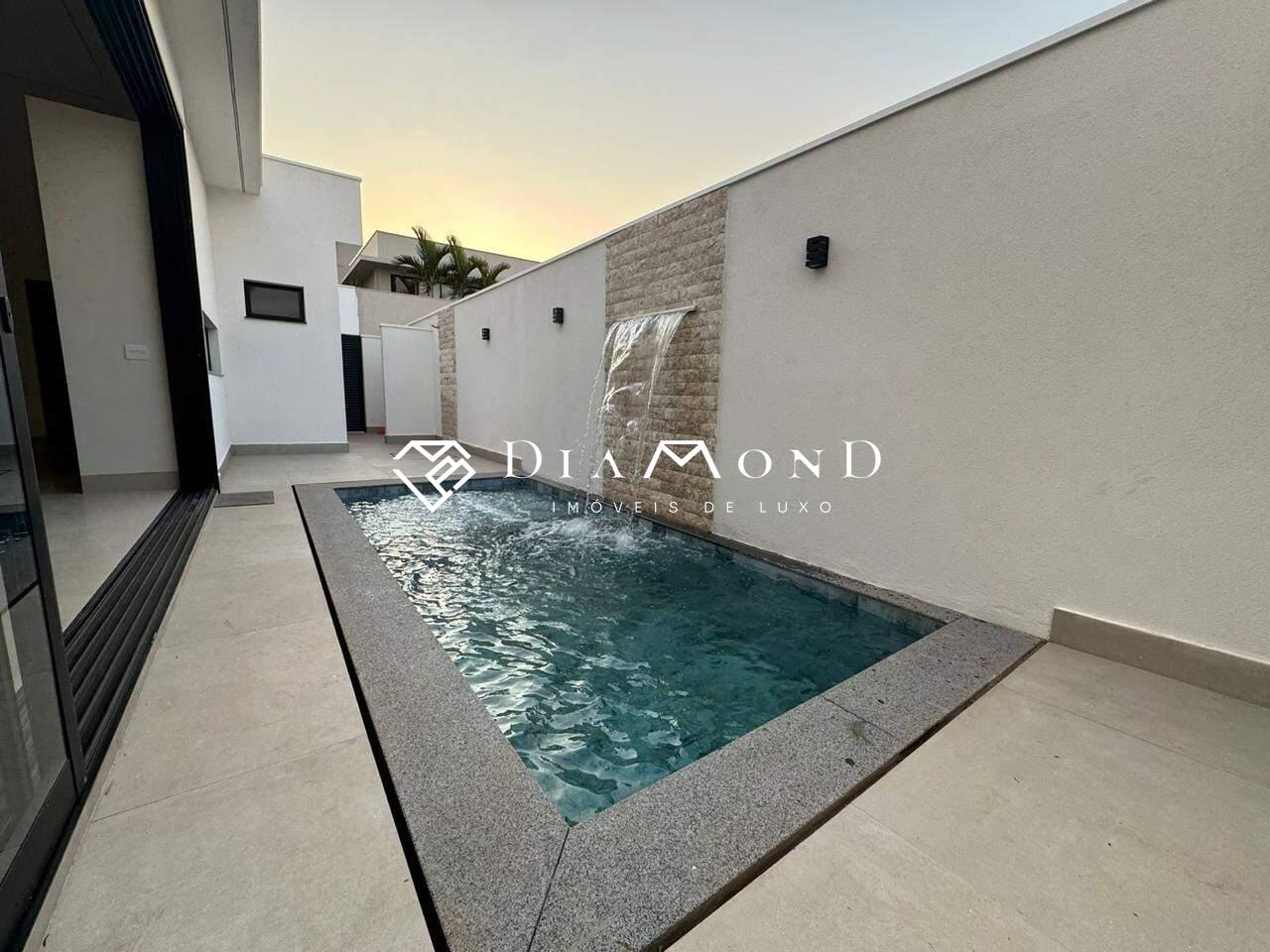 Casa térrea em condomínio com 208 m² de área construída em um terreno de 360 m², composta por três suítes, sendo uma master com closet e banheiro equipado com duas cubas e dois chuveiros. Conta com uma ampla sala de pé direito duplo integrada à área gourmet, cozinha espaçosa, escritório, dois lavabos (um interno e outro externo para a área da piscina), despensa, área de serviço, e garagem coberta para dois carros, com possibilidade de acomodar mais dois em área descoberta. Possui sistema de som embutido no teto da sala e área gourmet, piscina aquecida com cascata e hidromassagem, ilha na cozinha e na área gourmet, além de acabamento fino com porcelanato de 1,20 x 1,20 metros na área social. A casa dispõe de água aquecida em todos os banheiros e na cozinha, esquadrias integradas com motor e controle remoto nos quartos, e fachada alta com pele de vidro.