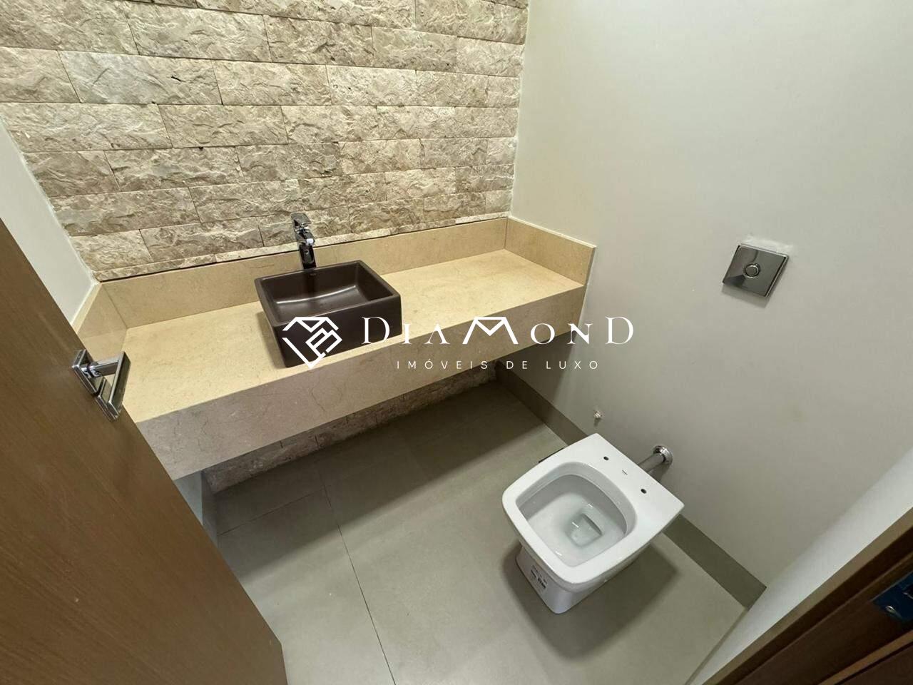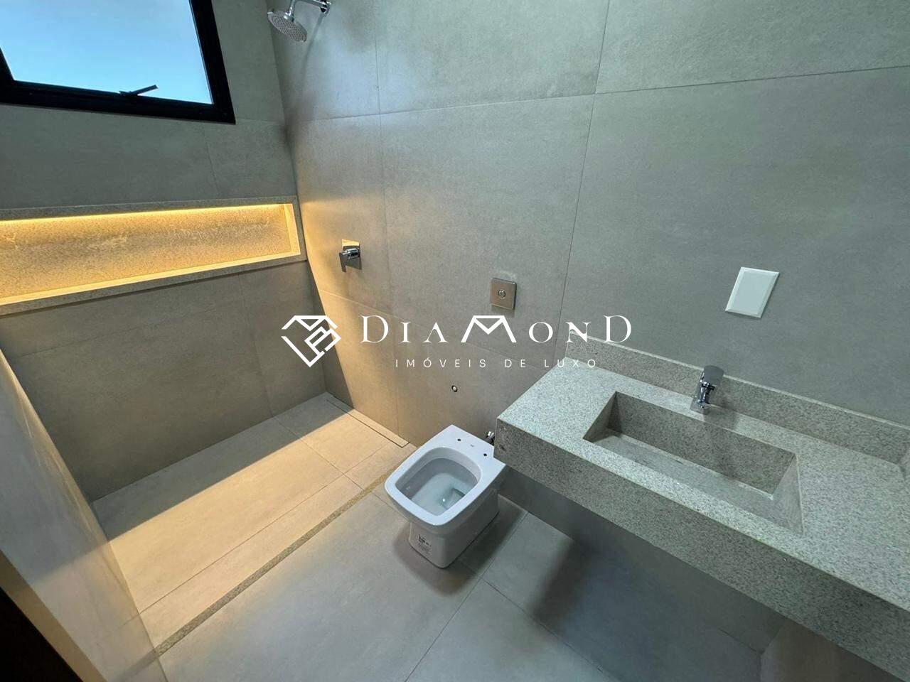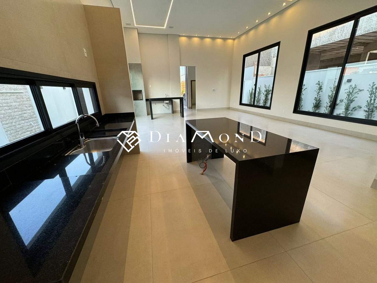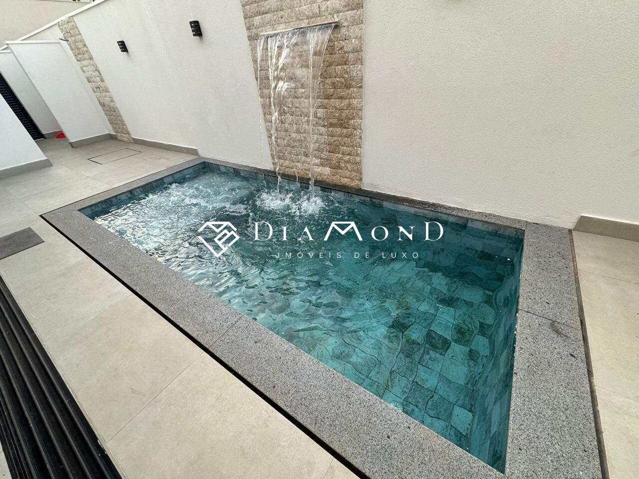 Casa térrea em condomínio com 208 m² de área construída em um terreno de 360 m², composta por três suítes, sendo uma master com closet e banheiro equipado com duas cubas e dois chuveiros. Conta com uma ampla sala de pé direito duplo integrada à área gourmet, cozinha espaçosa, escritório, dois lavabos (um interno e outro externo para a área da piscina), despensa, área de serviço, e garagem coberta para dois carros, com possibilidade de acomodar mais dois em área descoberta. Possui sistema de som embutido no teto da sala e área gourmet, piscina aquecida com cascata e hidromassagem, ilha na cozinha e na área gourmet, além de acabamento fino com porcelanato de 1,20 x 1,20 metros na área social. A casa dispõe de água aquecida em todos os banheiros e na cozinha, esquadrias integradas com motor e controle remoto nos quartos, e fachada alta com pele de vidro.